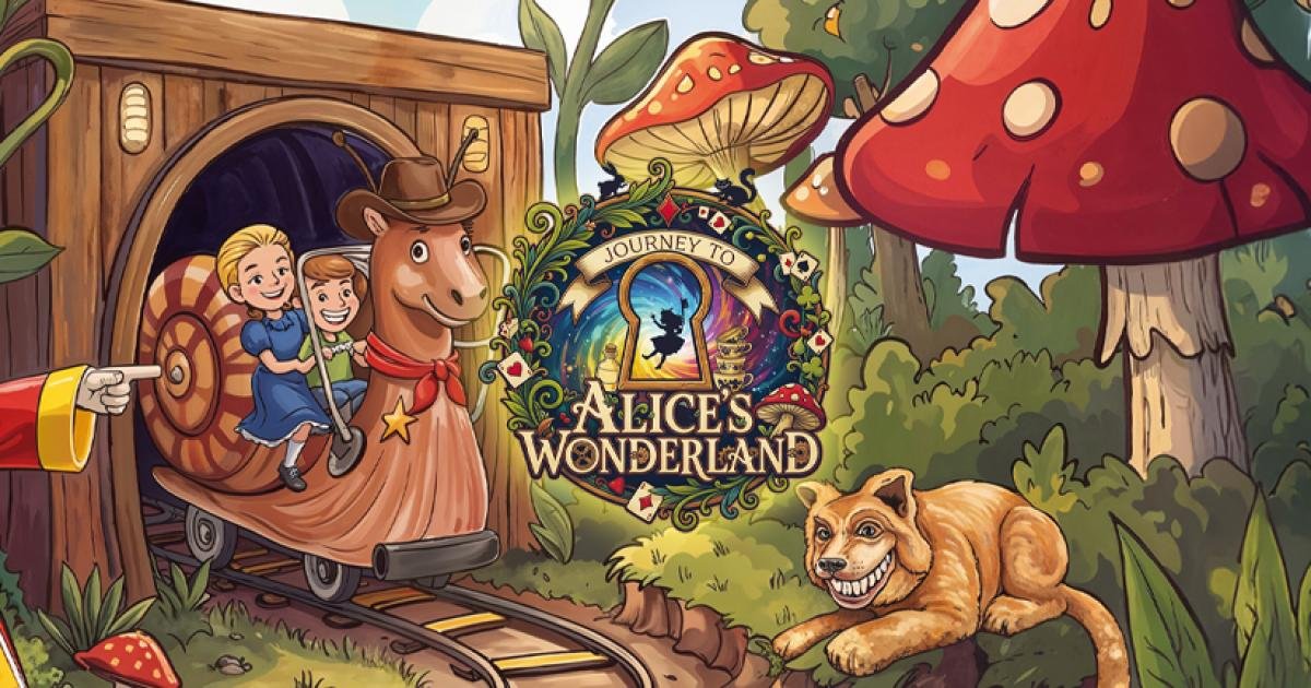 Riders will encounter familiar characters including Alice, the White Rabbit, the Mad Hatter, the Cheshire Cat, the Caterpillar, and the Queen of Hearts.
