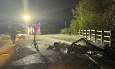 Emergency services were called to extinguish and investigate the suspected arson attack in a layby on the A418 near Wheatley. Firefighters from Oxfordshire Fire and Rescue...